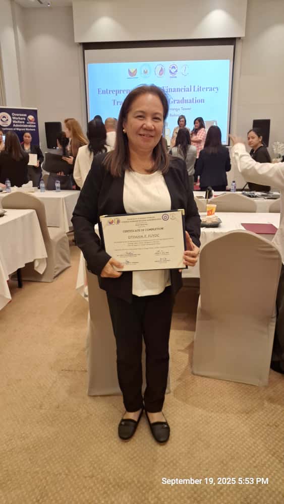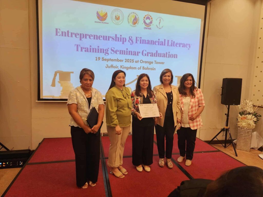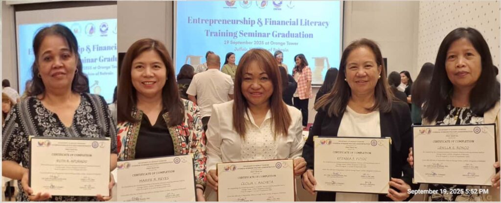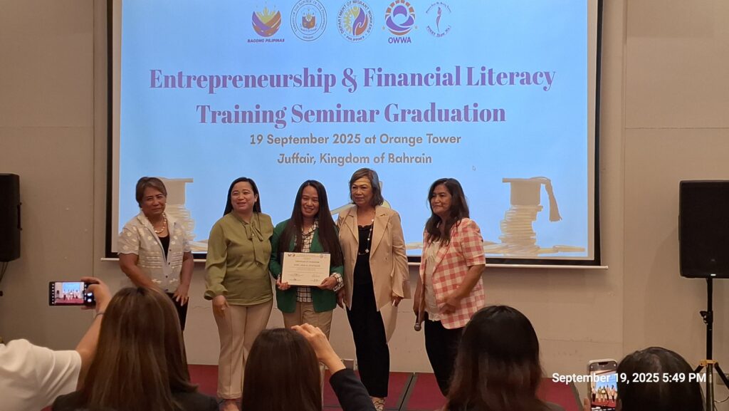 MANAMA, Bahrain — Forty Overseas Filipino Workers (OFWs) marked a significant achievement in their lives after graduating from the Entrepreneurship and Financial Literacy Training Program at Orange Hotel on 19 September 2025. The event concludes a life-changing program that aims to arm OFWs with the education and training they need to create jobs abroad, or at home in the Philippines.