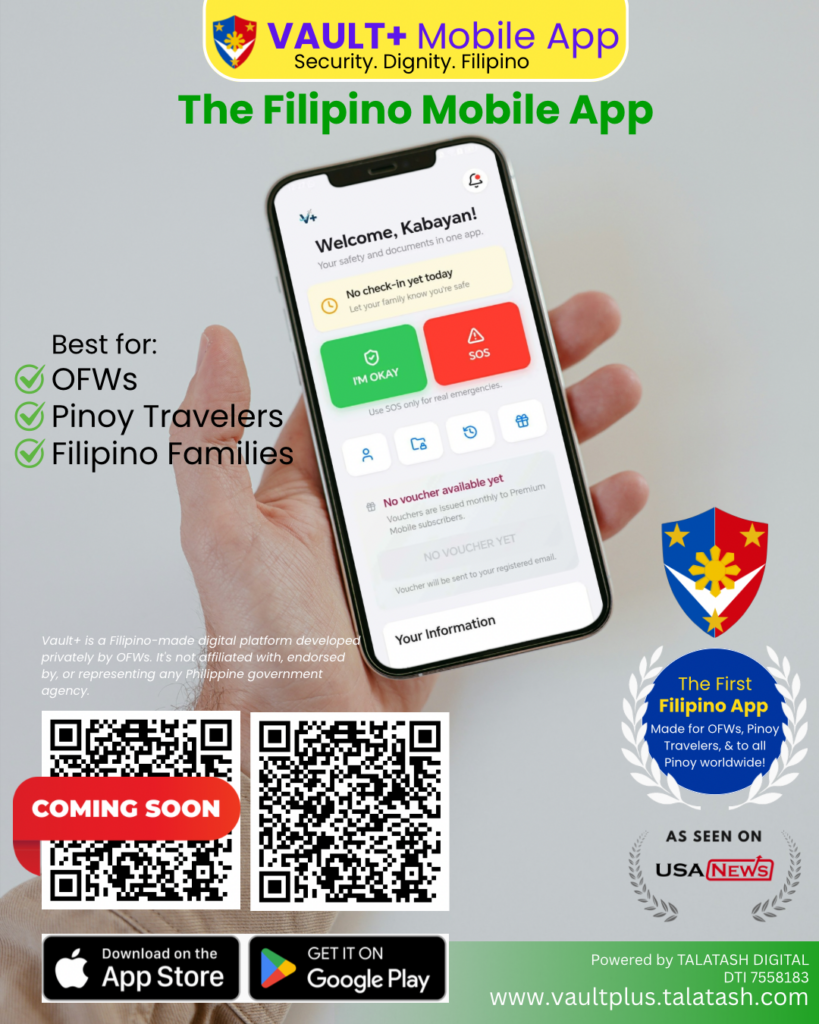 Casulla is the founder of Talatash and the creator of Vault+, a newly launched mobile application designed as a safety and family connection tool for OFWs, Filipino travelers, and families spread across borders. Alongside him is Mark Donato, Talatash’s chief financial officer, who helps steer the project’s long-term sustainability while balancing his own life abroad. Based in Riyadh, Saudi Arabia, the two built Vault+ not as a tech experiment, but as a response to a lived, deeply personal need.
