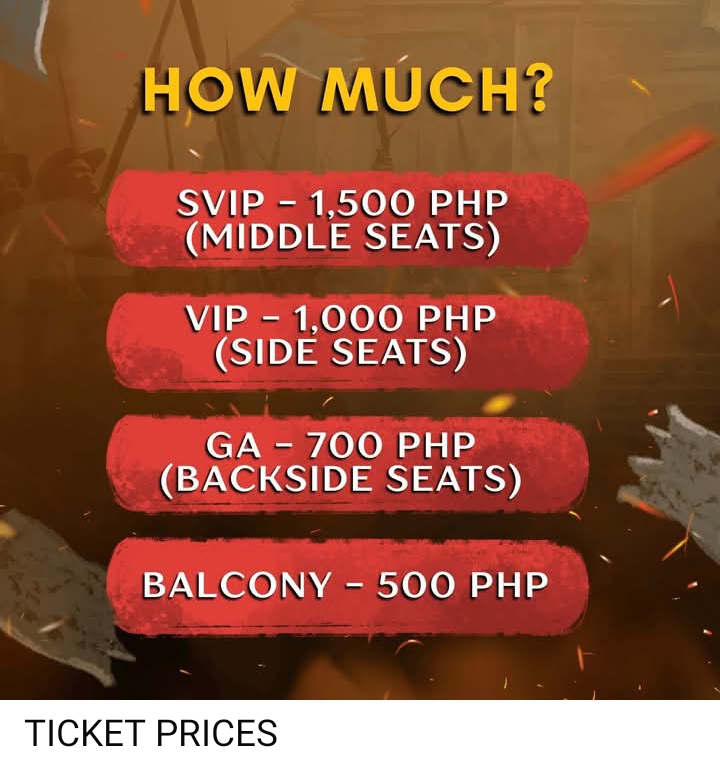 Tickets are priced at SVIP – ₱1,500, VIP – ₱1,000, General Admission – ₱700 and Balcony – ₱500