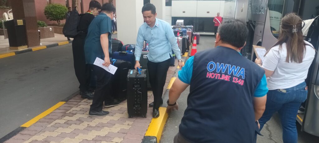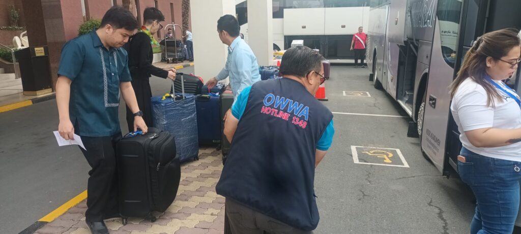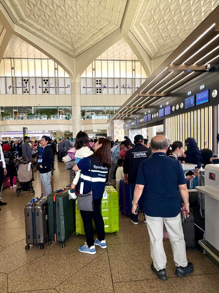 Former Bahrain Welfare Officer Dr. Amelito S. Adel, together with OWWA Welfare Officer in Riyadh Eric Miranda and members of the Department of Migrant Workers (DMW) Rapid Response Team, Marcelo S. Maningding Jr. and Kristine Oliveros, were present, contributing significantly to the successful implementation of the repatriation operation.