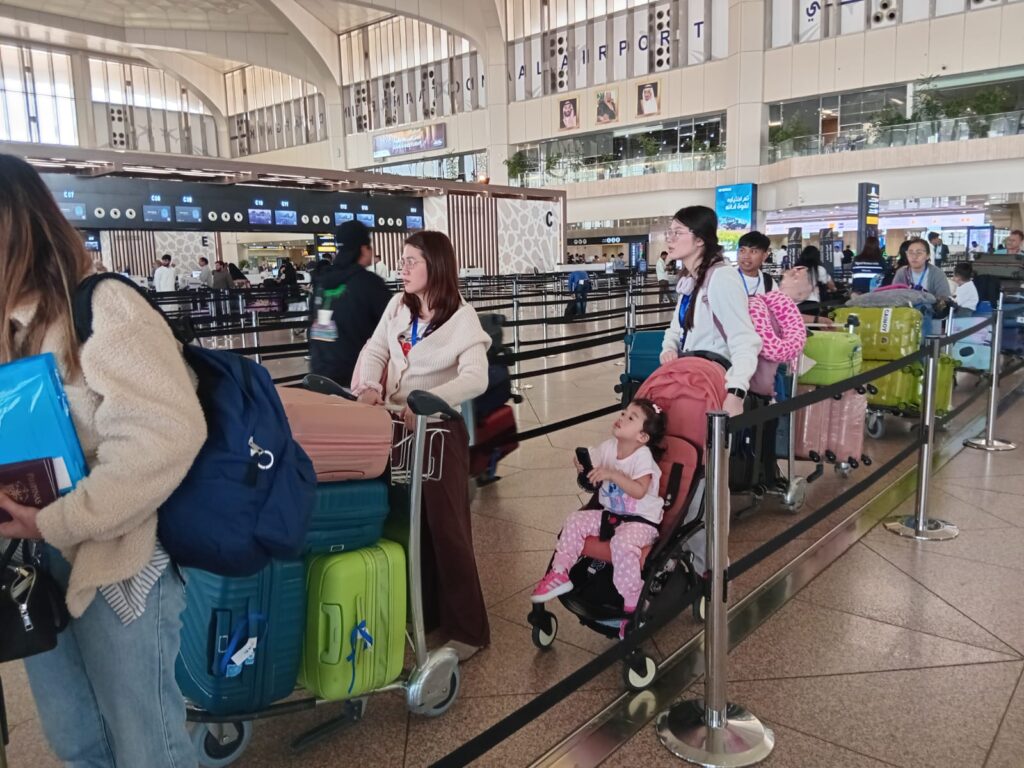 Each individual was allocated a total baggage allowance of 40 kilograms across two bags, which were loaded onto buses bound for Dammam with the assistance of Gulf Air personnel and volunteers from various organizations.