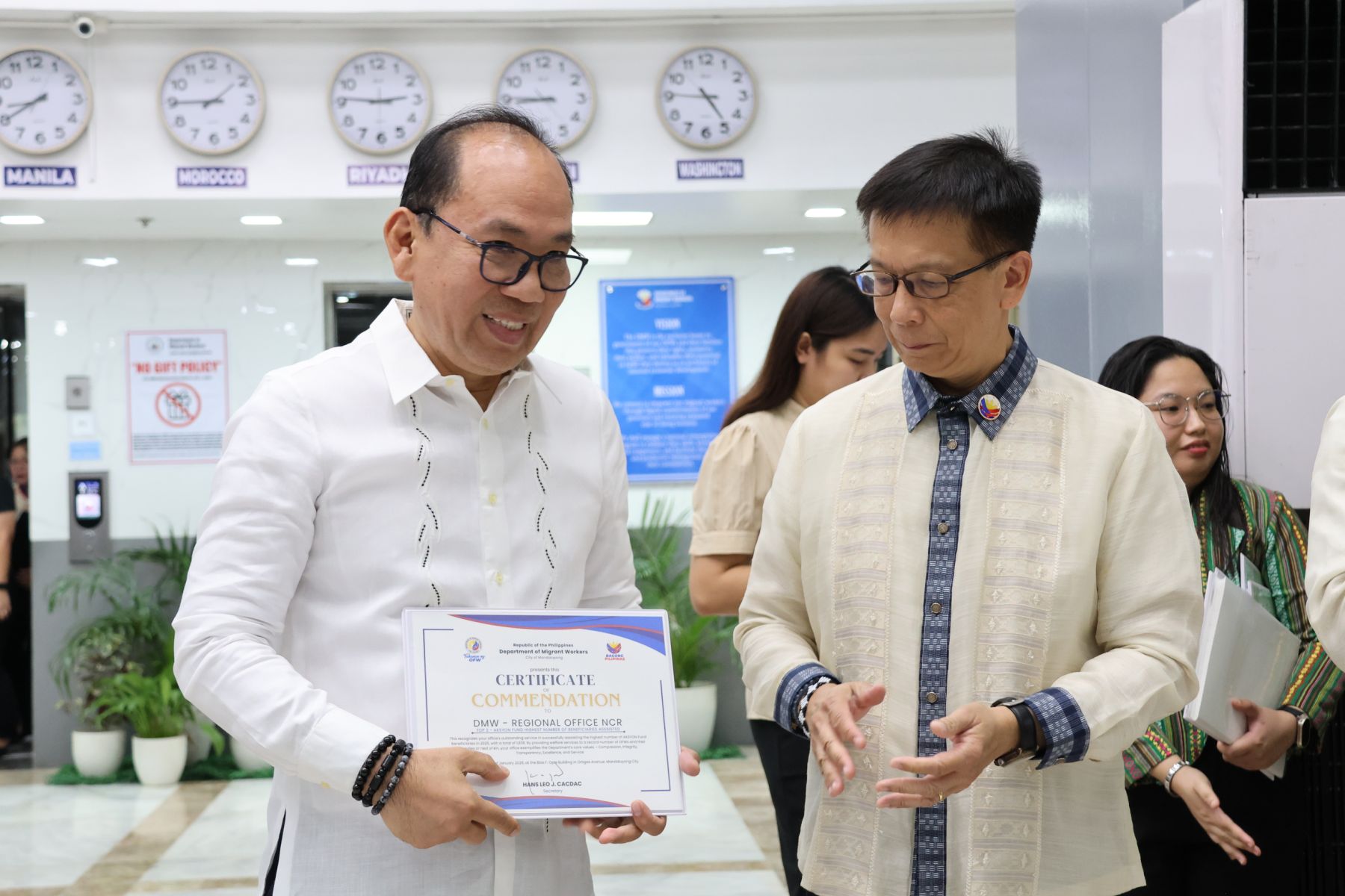 Beyond financial disbursements, the Department of Migrant Workers also recognized personnel who remained on duty during the year-end holidays from December 29, 2025 to January 2, 2026. The citation covered staff from the Central Office and regional units in NCR, Regions II, III, IV-A, IV-B, V, VI, VII, IX, X, XI, XII, and XIII, reflecting the agency’s continued deployment of responders during peak periods of overseas worker assistance demand.