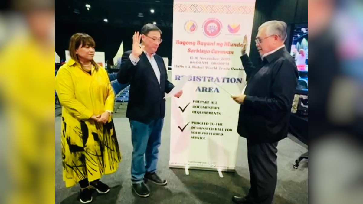 Los Banos took his oath of office before Ambassador Alfonso Ferdinand Ver on November 16 at the OFW Serbisyo Caravan held at the Dubai World Trade Center. He was accompanied by his wife, broadcast journalist Rachel Salinel.