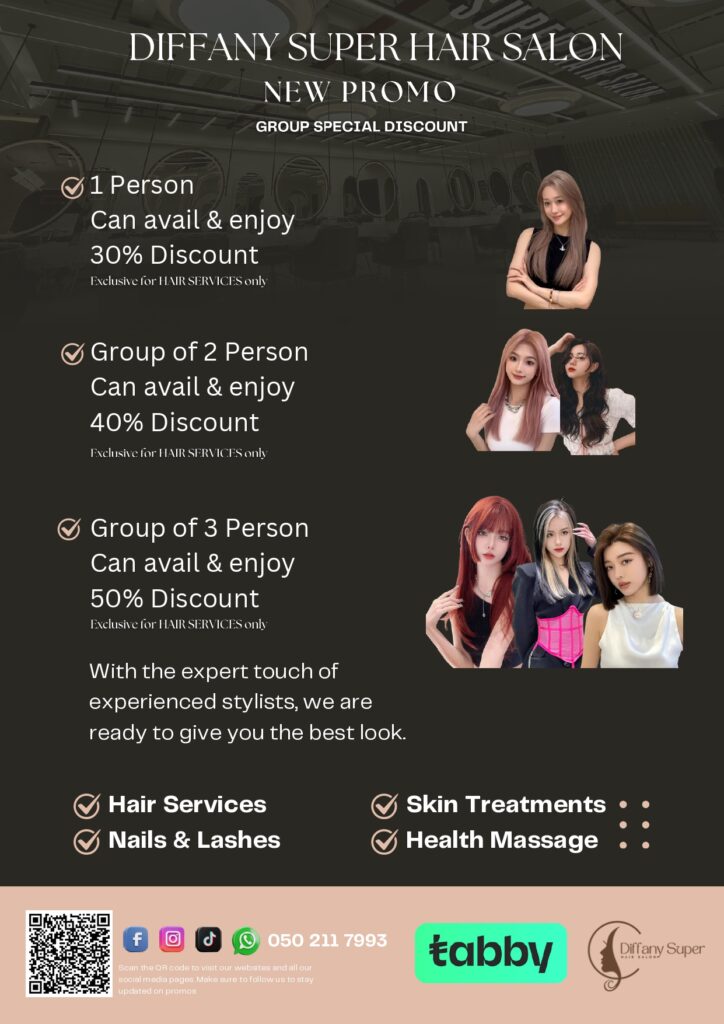 The salon encourages clients to bring friends, family, or colleagues to make the most of the limited-time offer. With discounts of up to half the price, Diffany Super Hair Salon promises a pampering experience that blends luxury and affordability.