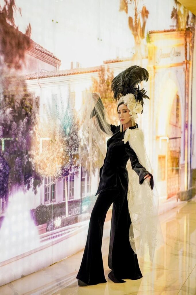 Her creative direction emphasizes refined femininity, not through loud statements but through quiet, compelling detail. LANEYU’s hallmark designs favor deep black tones—a color Kim believes represents “depth and grace.” Her curated palette supports the brand’s understated luxury, enhanced by the thoughtful selection of materials like velvet, cashmere, chiffon, and lace. The textures speak of subtle grandeur, while adornments such as feathers, corsages, ribbons, and frilled lace elevate each piece into wearable poetry.