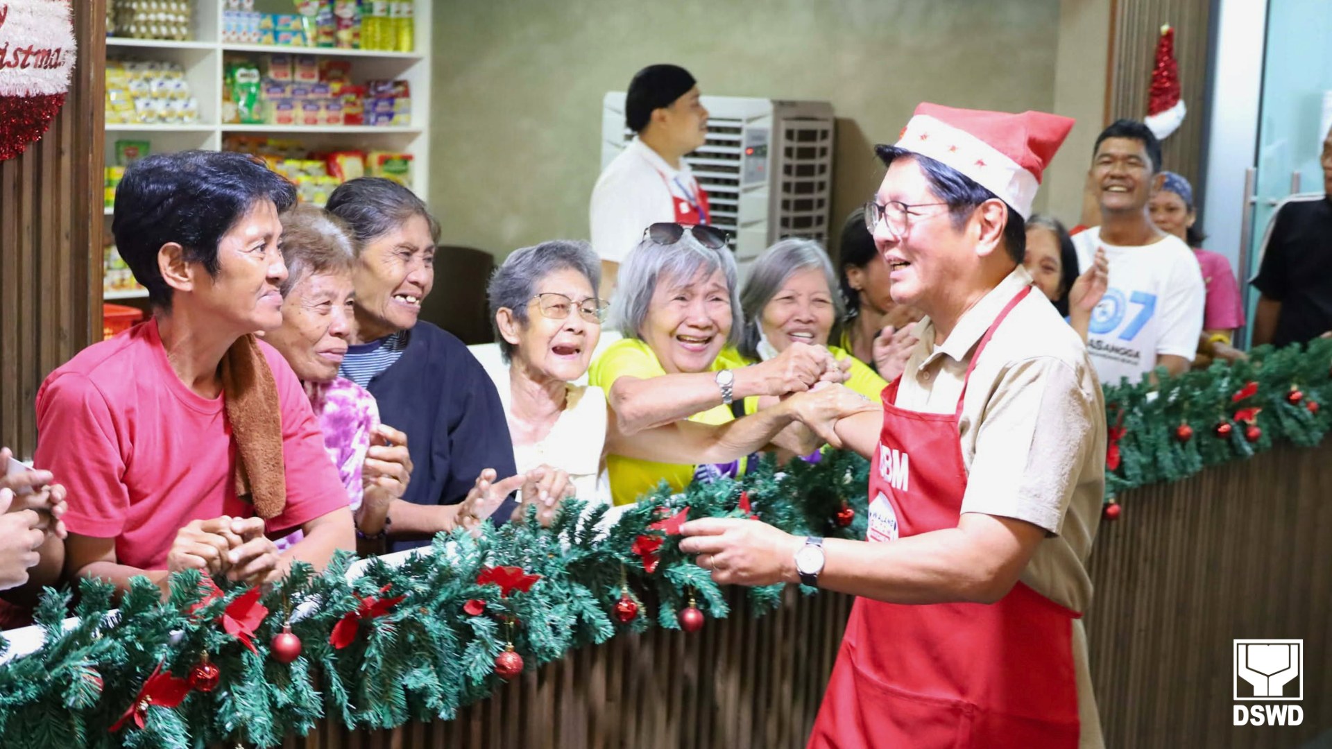 Clad in a Christmas hat and red apron, the President personally served meals to walk-in beneficiaries before touring the newly opened Pag-abot Processing Center, a facility designed to assist children, individuals, and families living in street situations through targeted interventions and support services.