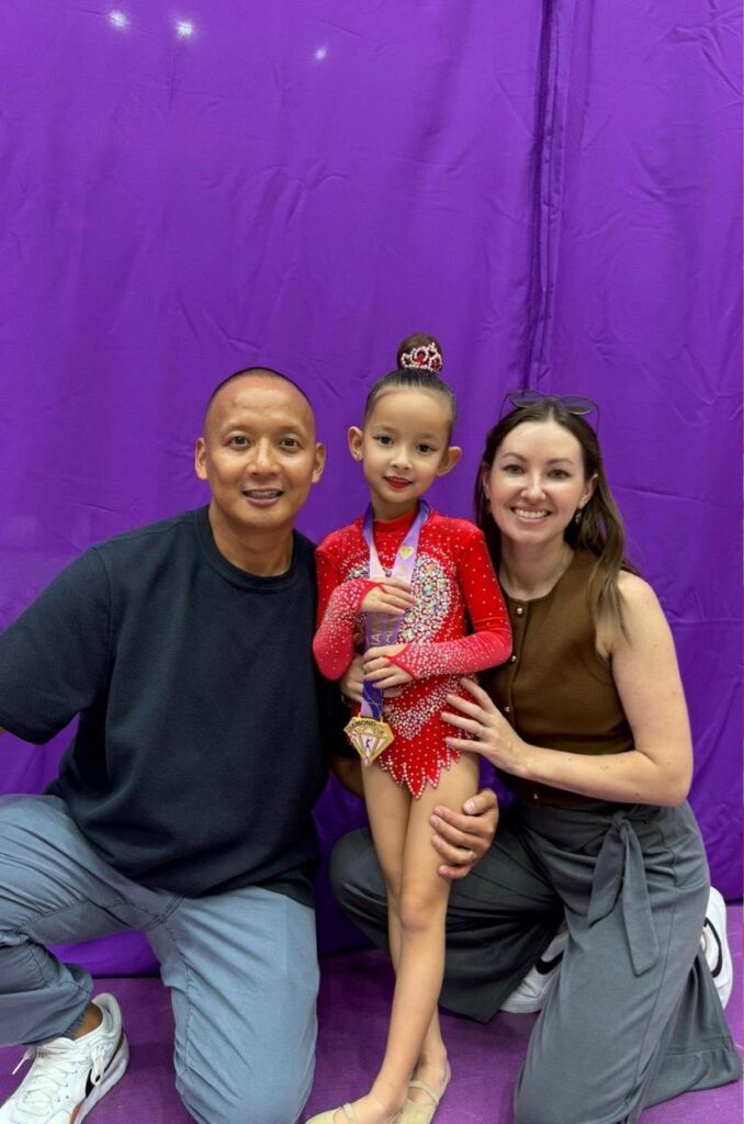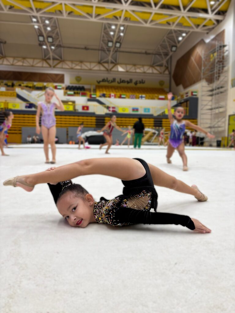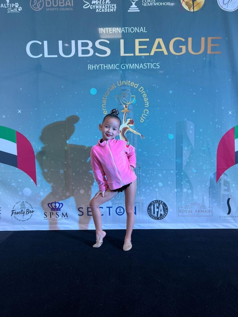 Born in Dubai in 2019, Samantha discovered her passion for rhythmic gymnastics at just four years old after attending a trial class. “I fell in love with it instantly,” she said, recalling how the sport captured her heart from the very beginning. Now in her second year of training, she spends about ten hours each week practicing routines and perfecting her skills under the guidance of her personal coach, Pelageya, whom she deeply admires. “She wants to be like her when she grows up,” shared her family.
