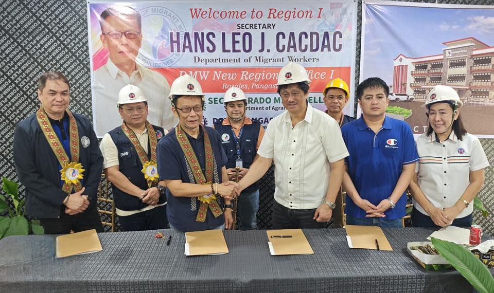 Under the agreement, the DMW will be granted free use of a four-storey building in Barangay Tomana West, Rosales. The facility will serve as a satellite office to expand the agency’s operations and deliver direct support to OFWs in Region I. Spanning 1,811 square meters on a 1.7-hectare property, the new center is expected to become a hub for vital services and program implementation.