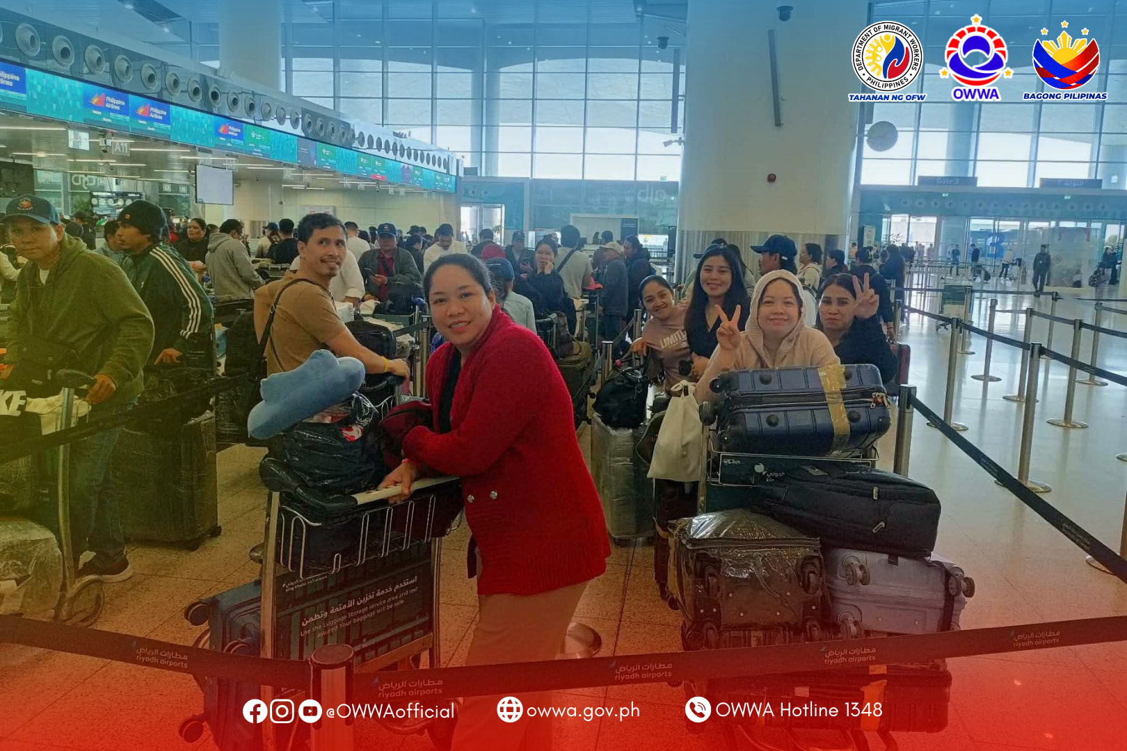 Repatriation flights have drawn from multiple countries. A chartered flight organized by OWWA departed Riyadh on March 14 carrying 341 distressed workers from Saudi Arabia, Kuwait, and Bahrain — with Bahraini-based OFWs having crossed land borders to reach the Saudi capital before boarding. That flight was expected at Ninoy Aquino International Airport the following day.