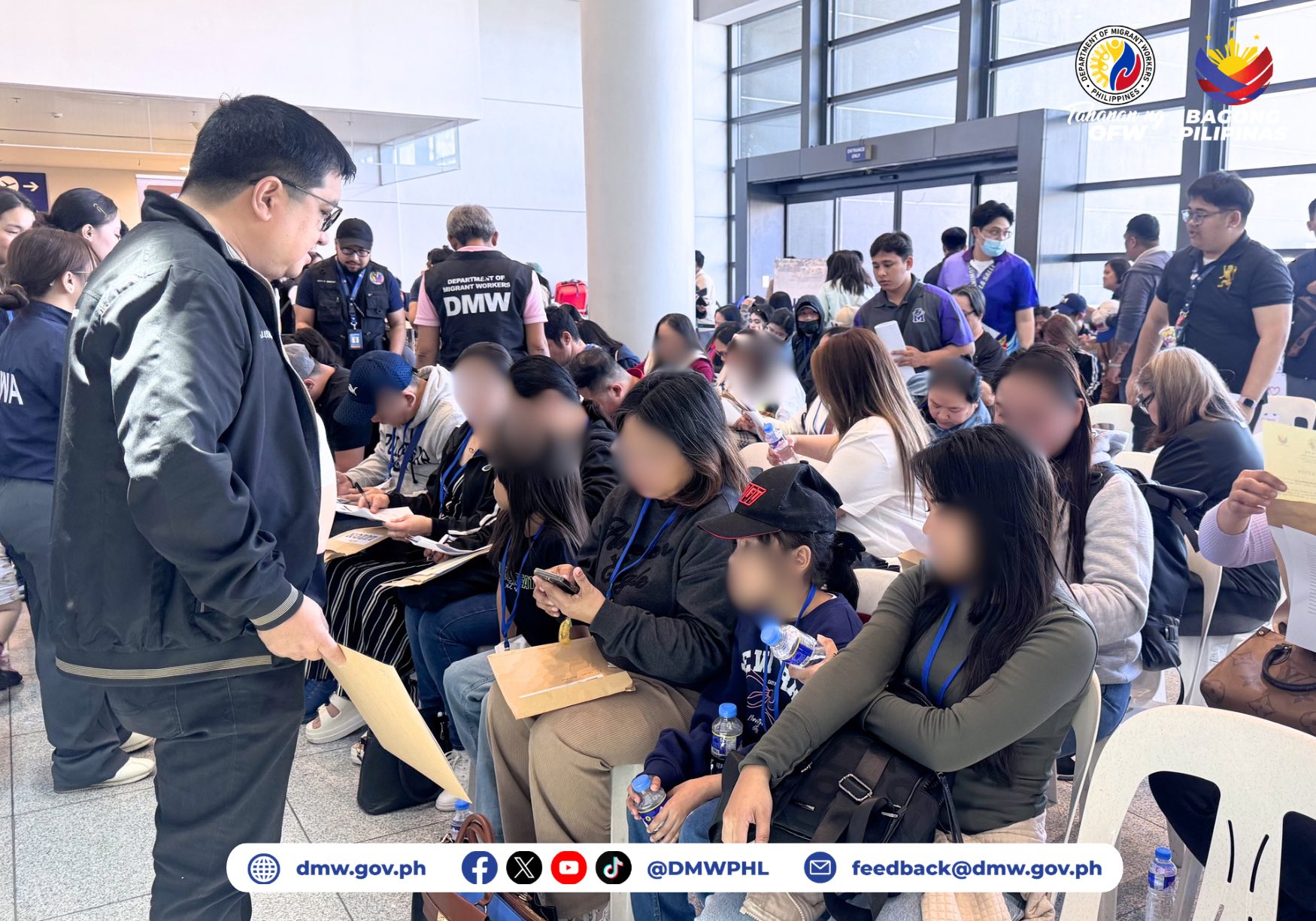 Upon arrival, the returnees were received by a multi-agency team that provided financial and medical assistance, temporary shelter, and transportation back to their home provinces. The Overseas Workers Welfare Administration, the Department of Social Welfare and Development, and the Department of Health were among the agencies present at the airport.