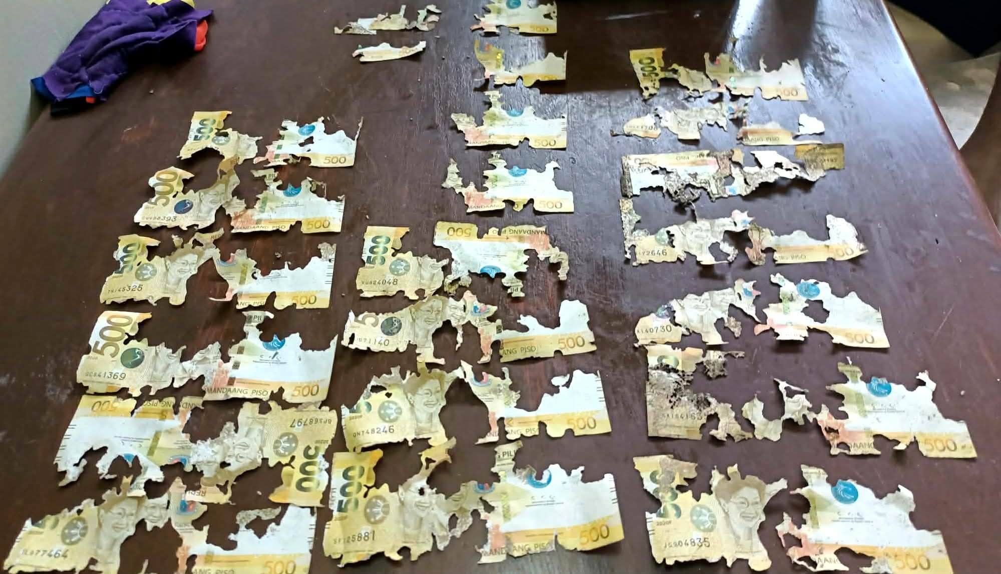 Cirilo Bitang posted a video showing fragments of P500 bills that had been stored inside a wooden box placed in a locker. He said the money had been set aside over the course of a year and was kept in what he believed was a secure location.