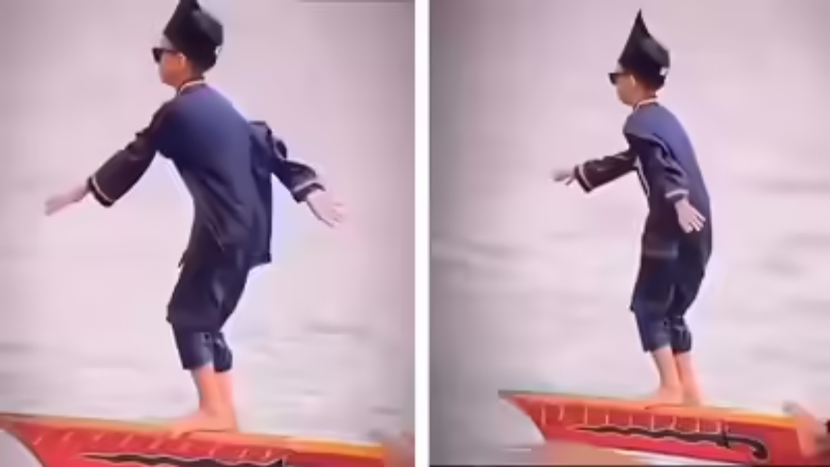 Rayyan became an internet icon after a video of him dancing calmly on the tip of a traditional racing boat during a local festival in Indonesia went viral. Dressed in traditional attire and wearing signature black sunglasses, his cool and composed moves sparked a global trend called “Aura Farming.”