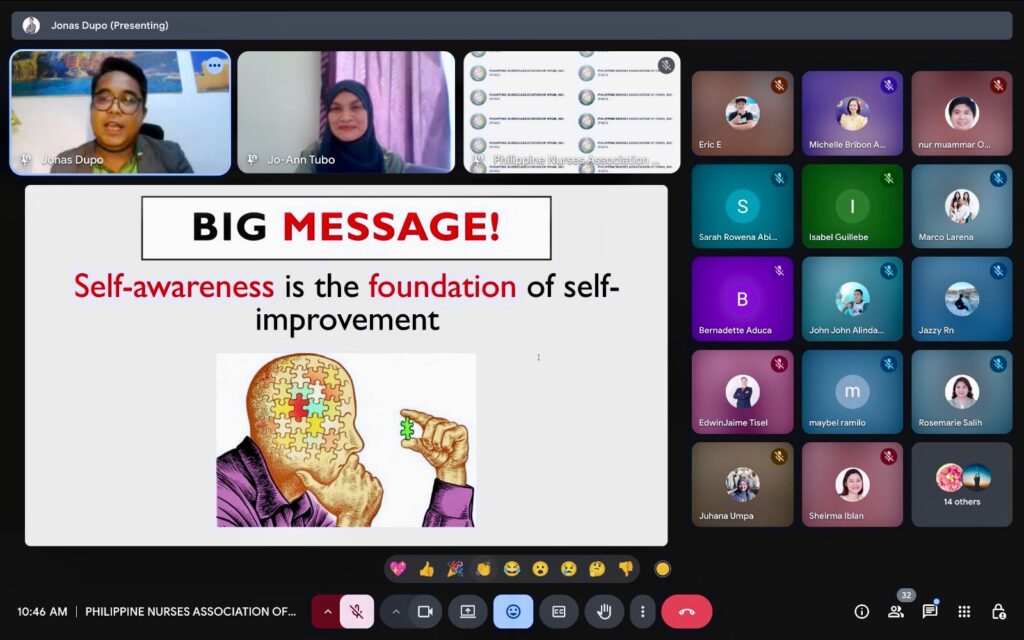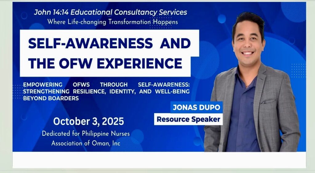 In celebration of World Mental Health Day, the Philippine Nurses Association of Oman, Inc. (PNAO) proudly presented the webinar “Self-Awareness and the OFW Experience” with the theme “Empowering OFWs Through Self-Awareness: Strengthening Resilience, Identity, and Well-Being Beyond Borders.”